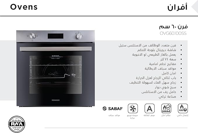 Kenwood OVG60.100SS Built-in Gas Oven is made from high-quality material. This built-in oven is designed to smooth integration into your kitchen cabinetry, saving space while providing top-notch performance. It is an excellent addition to any modern kitchen. It offers ample space to prepare family-sized meals. Its efficient cooking system provides precise temperature control, ensuring perfect results every time. Its user-friendly design includes intuitive controls, making it an ideal choice for those upgrading their kitchen.