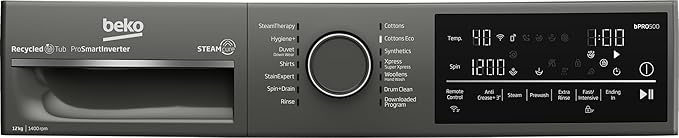 غسالة بيكو أوتوماتيكية تحميل أمامي – ١٢ كجم – ١٤٠٠ دورة في الدقيقة – محرك برو سمارت العاكس – رقمية – واي فاي – بلوتوث – سريم كيور – رمادي مانهاتن – B3WFU51240MCI
