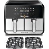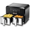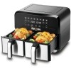 قلاية هوائية ديجيتال بتصميم مزدوج 1700 وات سعة 4 ليتر + 4 ليتر مع دوران سريع للهواء الساخن للقلي والشواء والتحميص والخبز من بلاك اند ديكر، موديل DZAF1700-B5، 8 ليتر، 1700 واط، متعدد