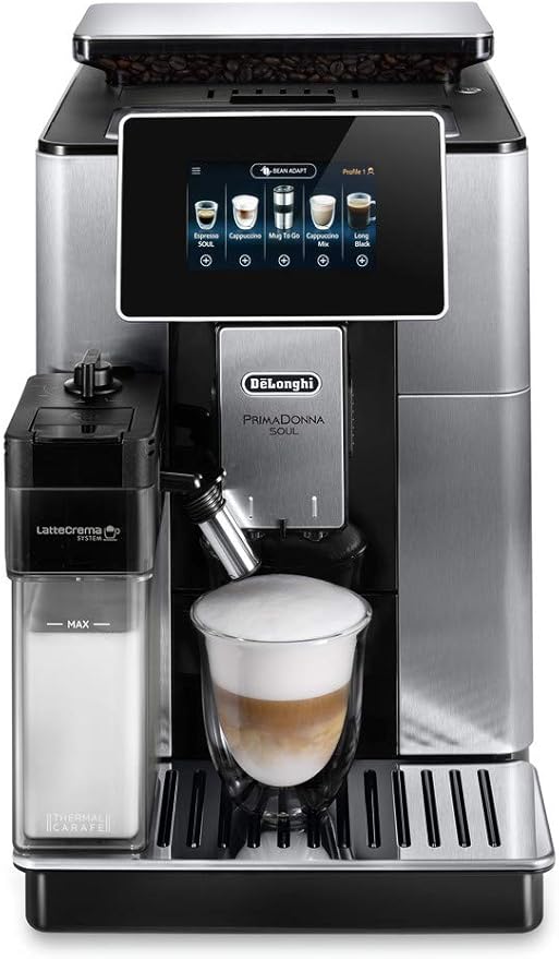 ديلونجي بريمادونا سول، ماكينة قهوة أوتوماتيكية بالكامل، إسبريسو وكابتشينو، ECAM610.75.mb، أسود وفضي (ضمان دولي)