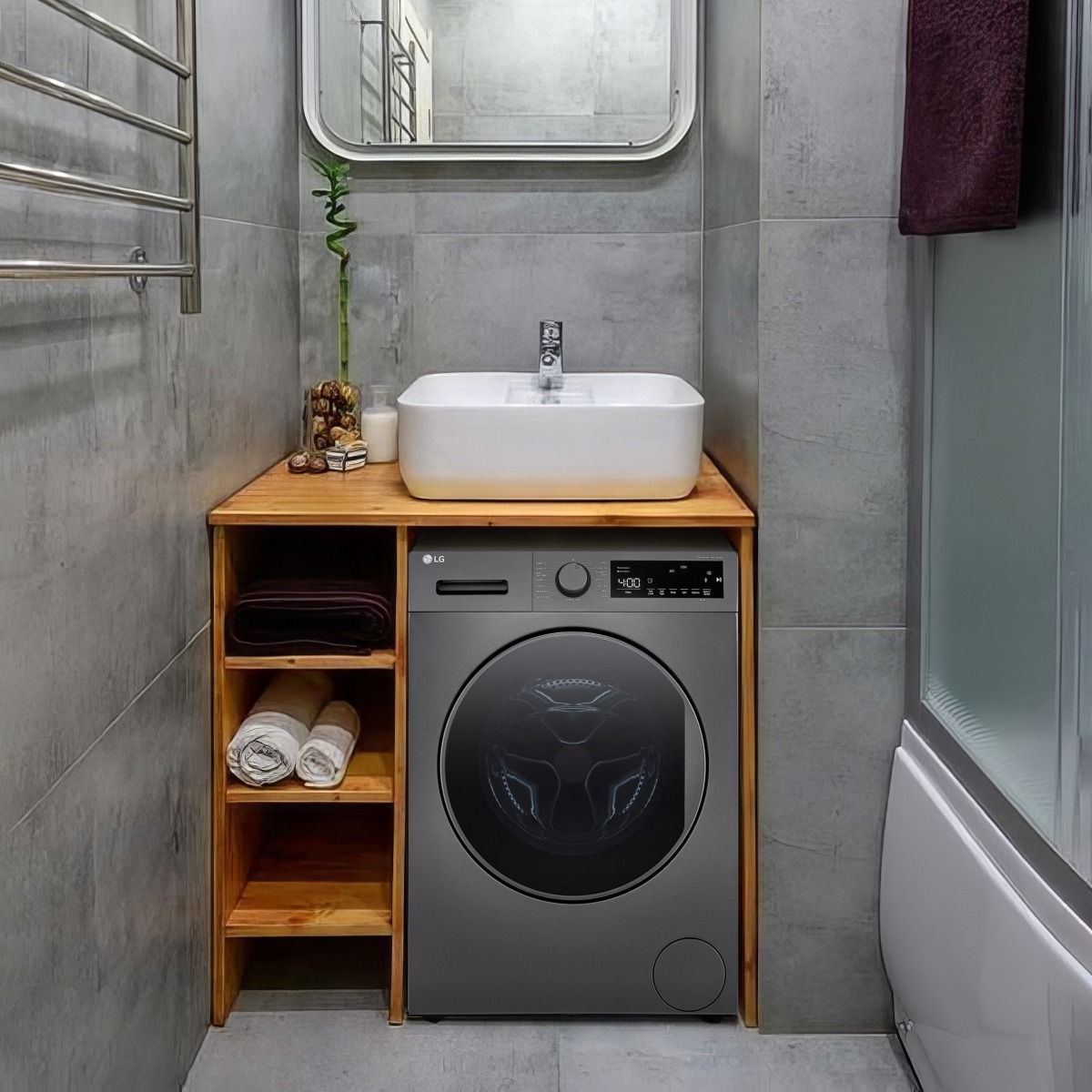 غسالة ملابس ال جي فول اوتوماتيك بتقنية الانفرتر، تحميل امامي، 8 كجم، فضي غامق – F2T2TYM1S