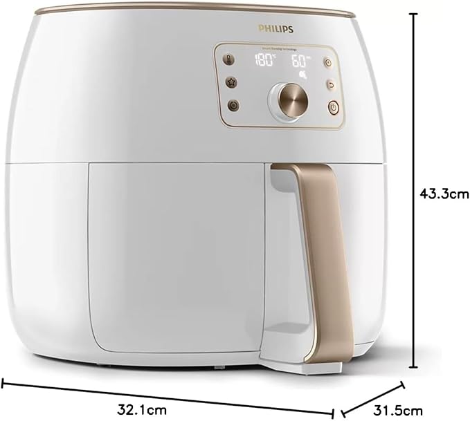قلايه فيليبس الهوائية الفاخرة XXL – قلايه هوائية بدون زيت، تقنية الاستشعار الذكي، ٢٢٢٥ واط، تقنية إزالة الدهون، تقنية الهواء السريع، لون أبيض، HD9870/20