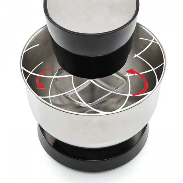 – عدد 3 ملحقات من المعدن الصلب: ملحق الخفق، ملحق العجين الخفيف، ملحق العجين الثقيل